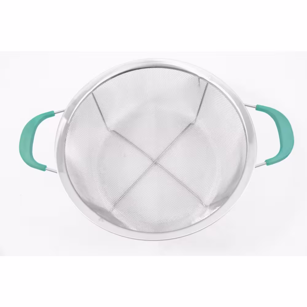 ExcelSteel 11.25" Reinforced Stainless Steel Mesh Colander w/Teal Silicone Handles