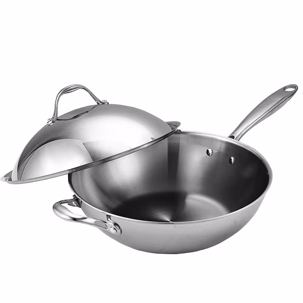 None Diamond Tri-ply 5 QT. Stainless Steel Nonstick Wok with Glass Lid