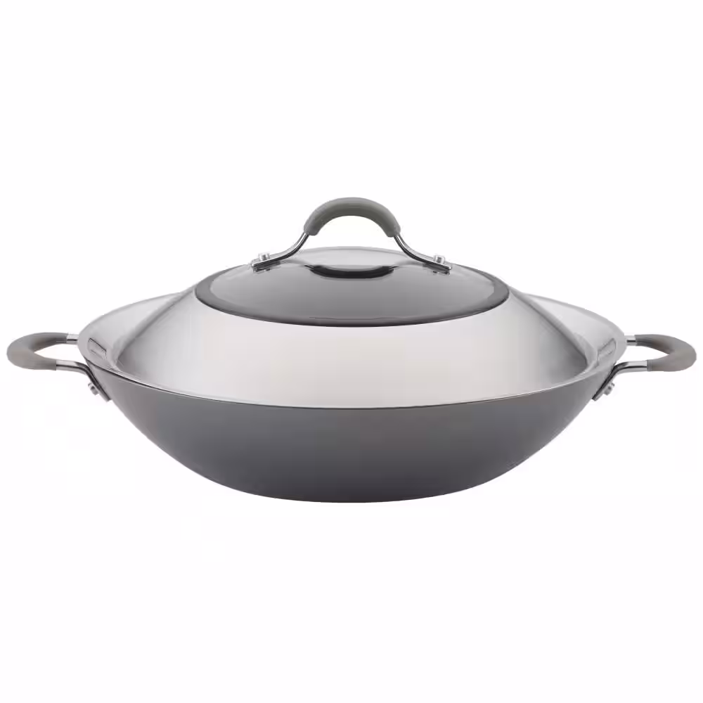 Circulon Elementum Hard-Anodized Nonstick Covered Wok with Side Handles, 14-Inch, Oyster Gray
