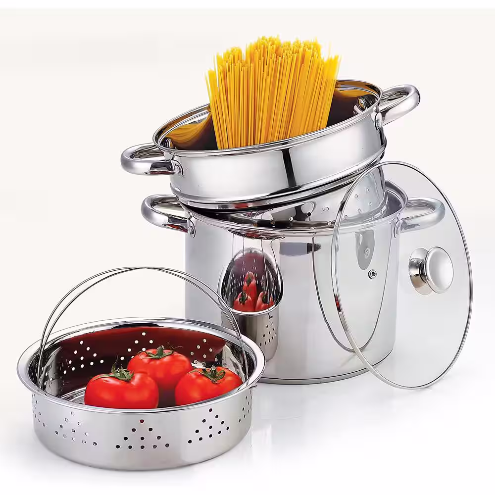 Cook N Home Stainless Steel 4-Piece 8 Qt. Pasta Cooker Steamer Multi-Pots