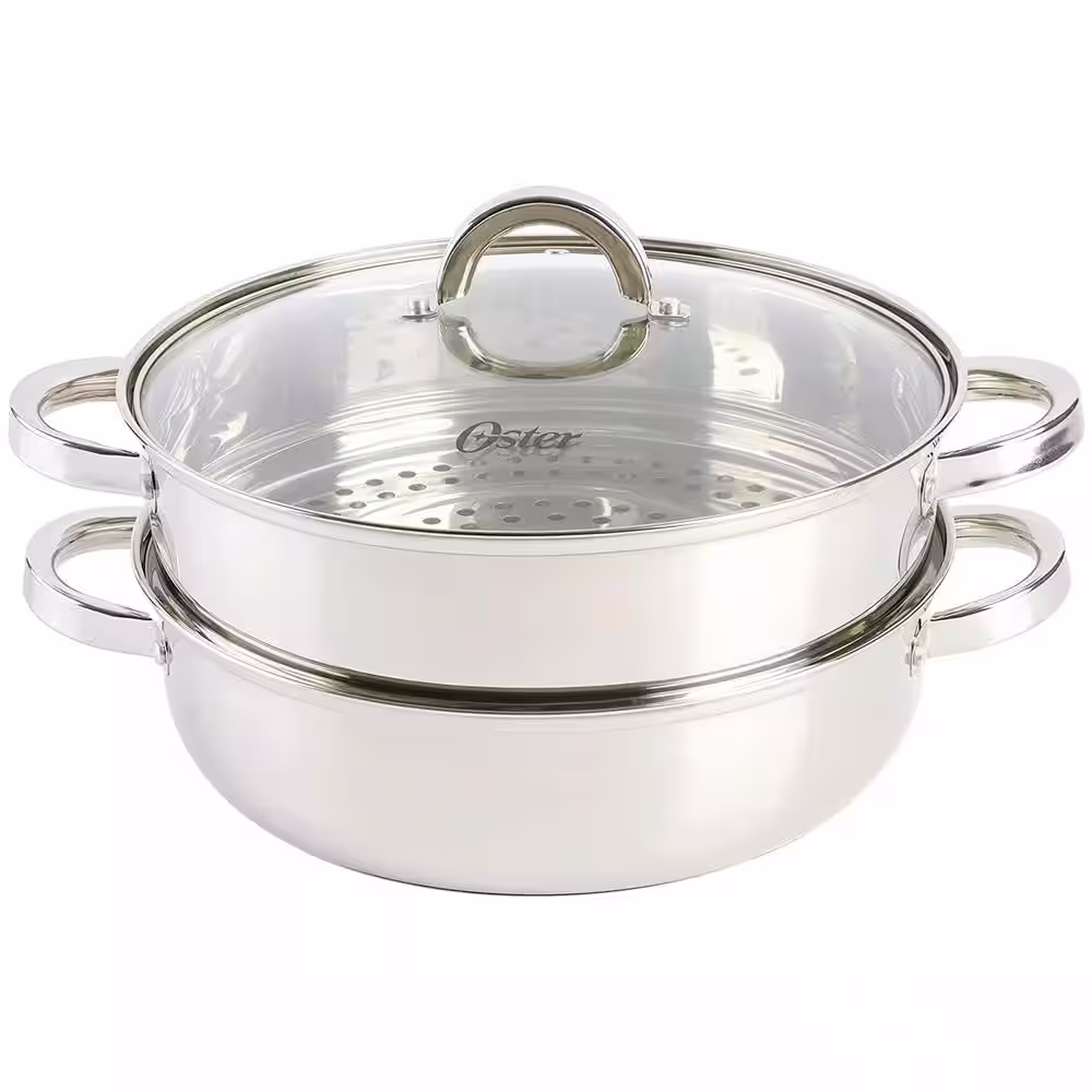 Oster Sangerfield 3-Piece 11-in. Stainless Steel Everyday Pan with Steamer and Lid