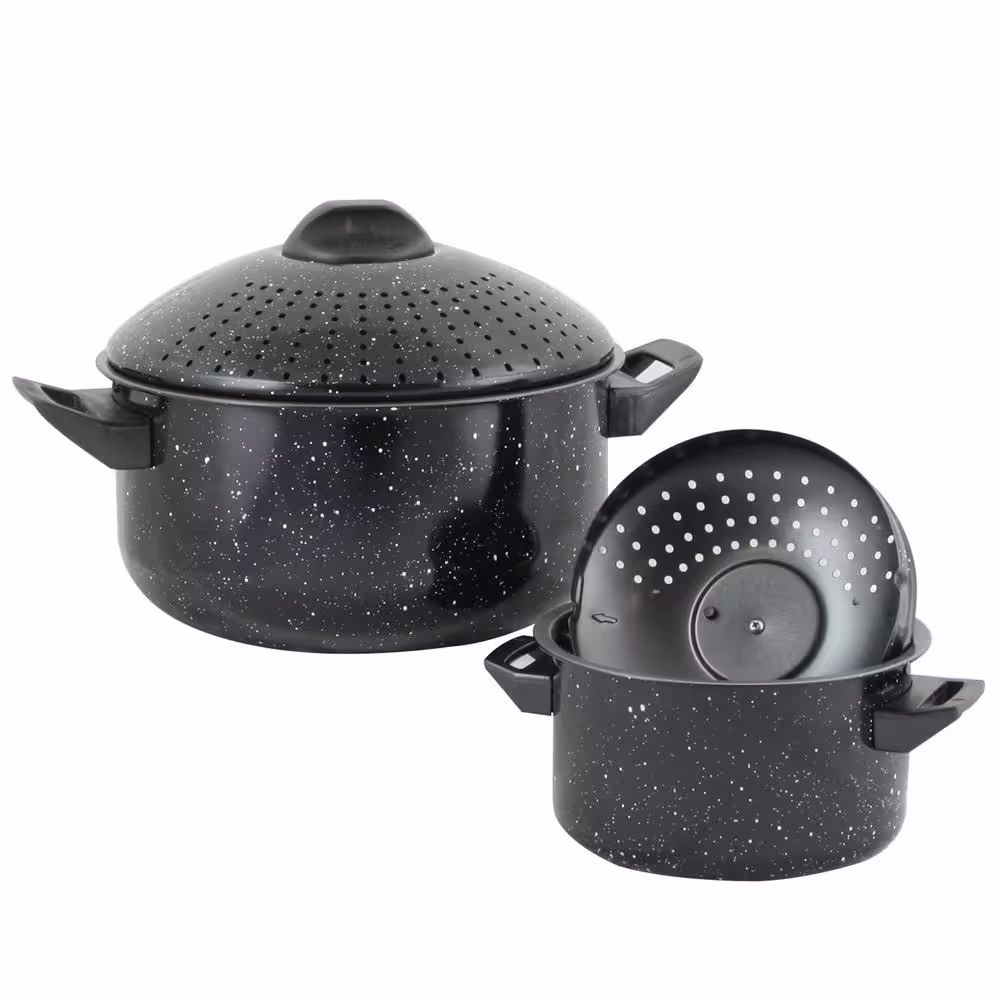 Gibson Home Casselman 4-Piece Steel Nonstick Pasta Pot Set in Black Speckle