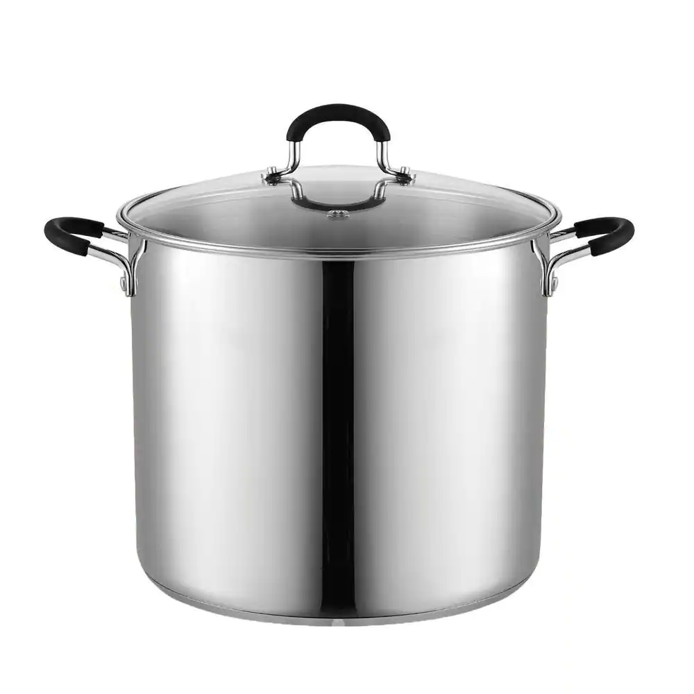 Cook N Home 12 qt. Stainless Steel Stock Pot in Black and Stainless Steel with Glass Lid