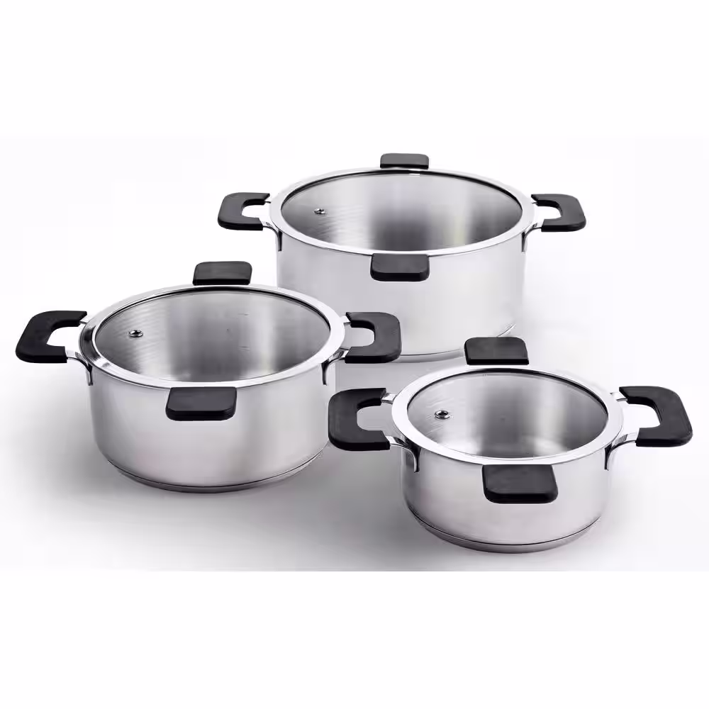 Ozeri 6-Piece Stainless Steel Inductive Pot Set with Straining and Hands-Free Glass Lids