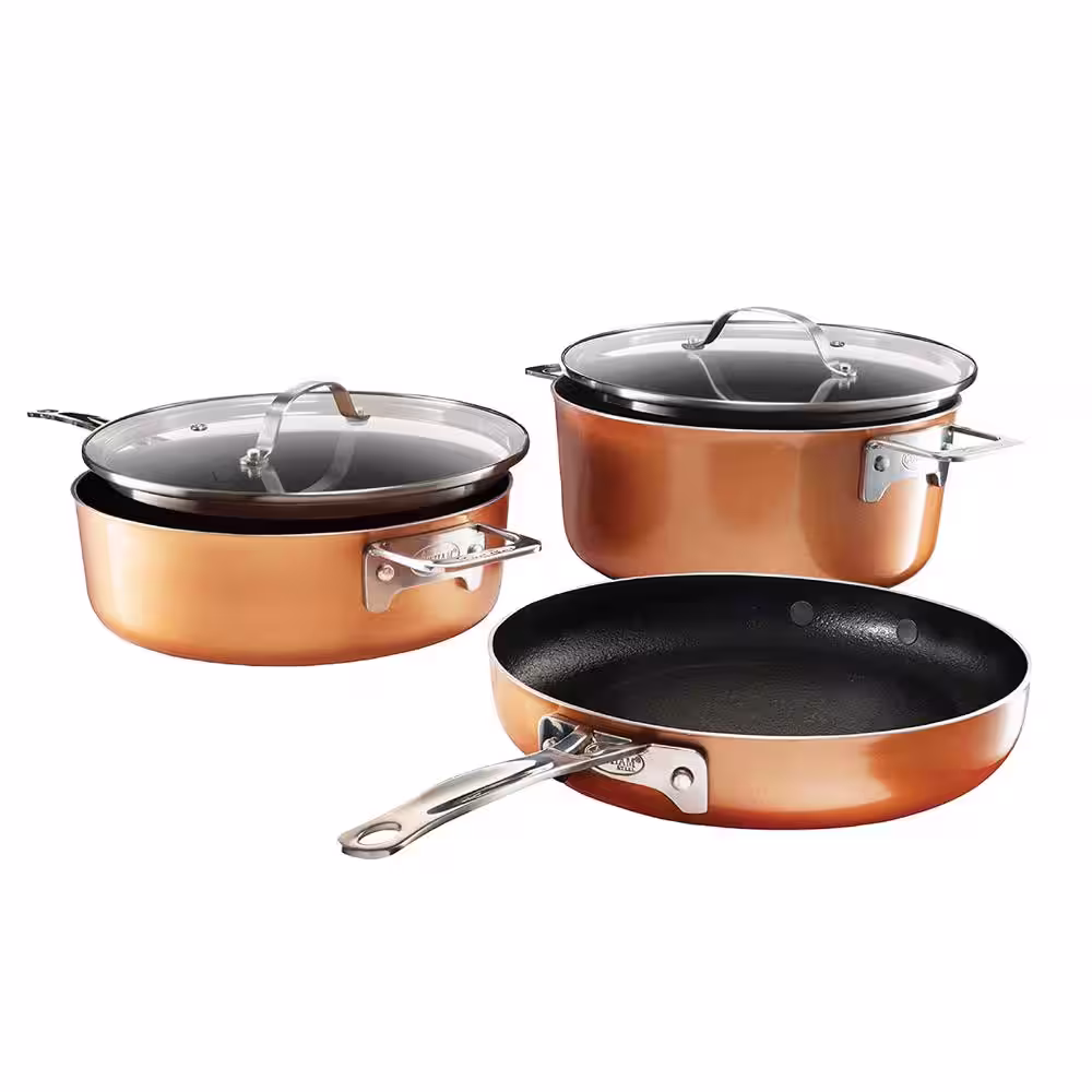 Gotham Steel StackMaster 5-Piece Aluminum Ultra-Nonstick Cast Textured Ceramic Coating Cookware Set