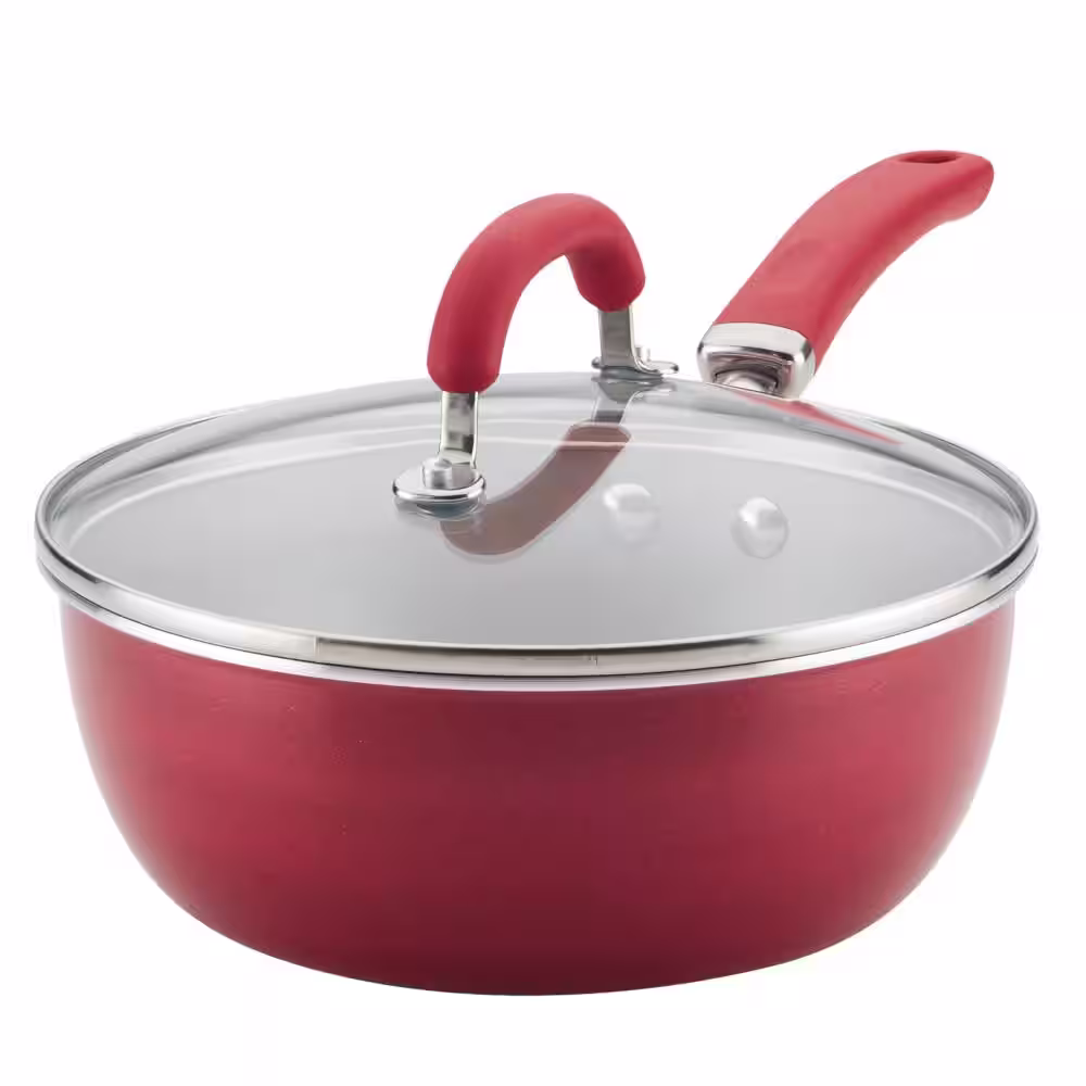 Rachael Ray 10 in. Aluminum Nonstick Skillet Create Delicious in Red Shimmer with Glass Lid