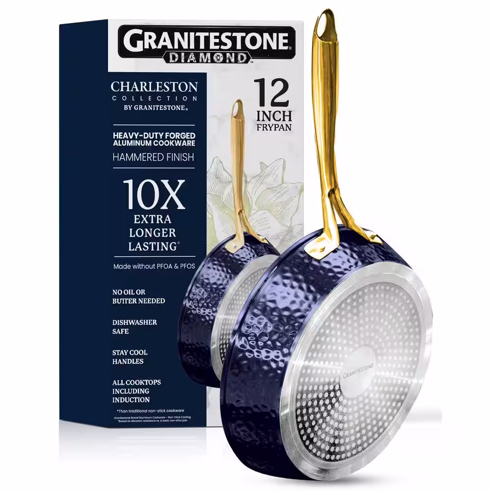 GRANITESTONE Charleston Collection 12 in. Aluminum Hammered Nonstick Frying Pan in Navy