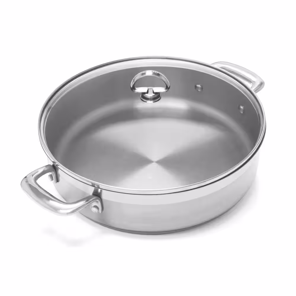 J&V TEXTILES 4.5 qt. 9.5 in. Silver Tri-Ply Stainless Steel, Professional Grade, Stainless Cookware, Fry Pan with Lid