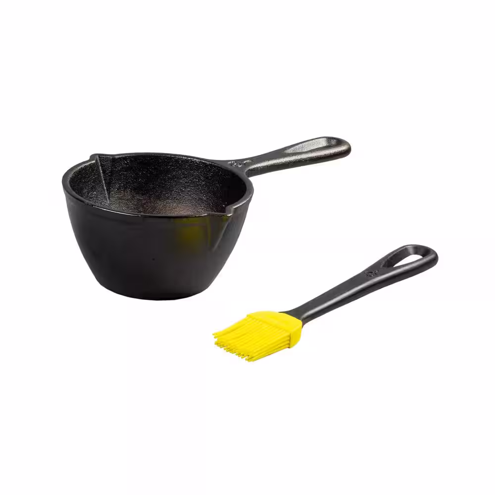 Lodge 0.5 qt. Cast Iron Melting Pot in Black with Silicone Brush