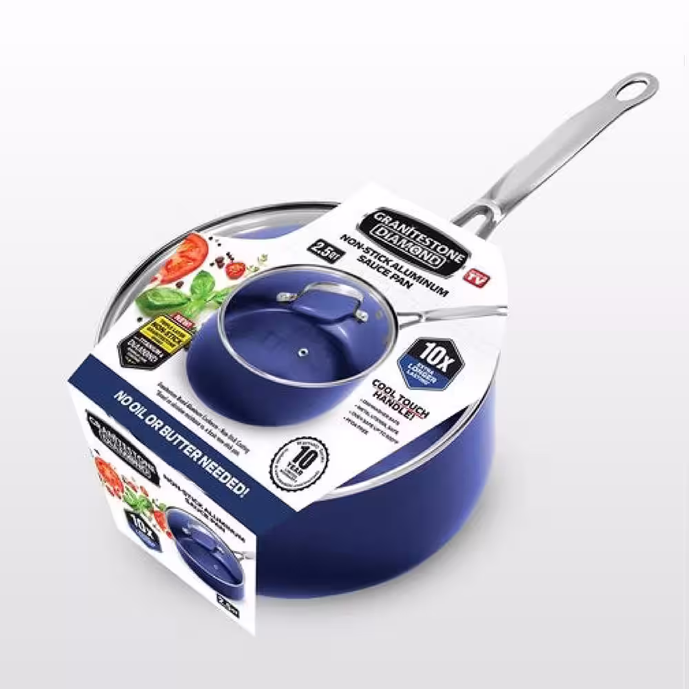 GRANITESTONE Classic Blue 2.5 qt. Aluminum Ultra-Durable Non-Stick Diamond Infused Saucepan with Glass Lid