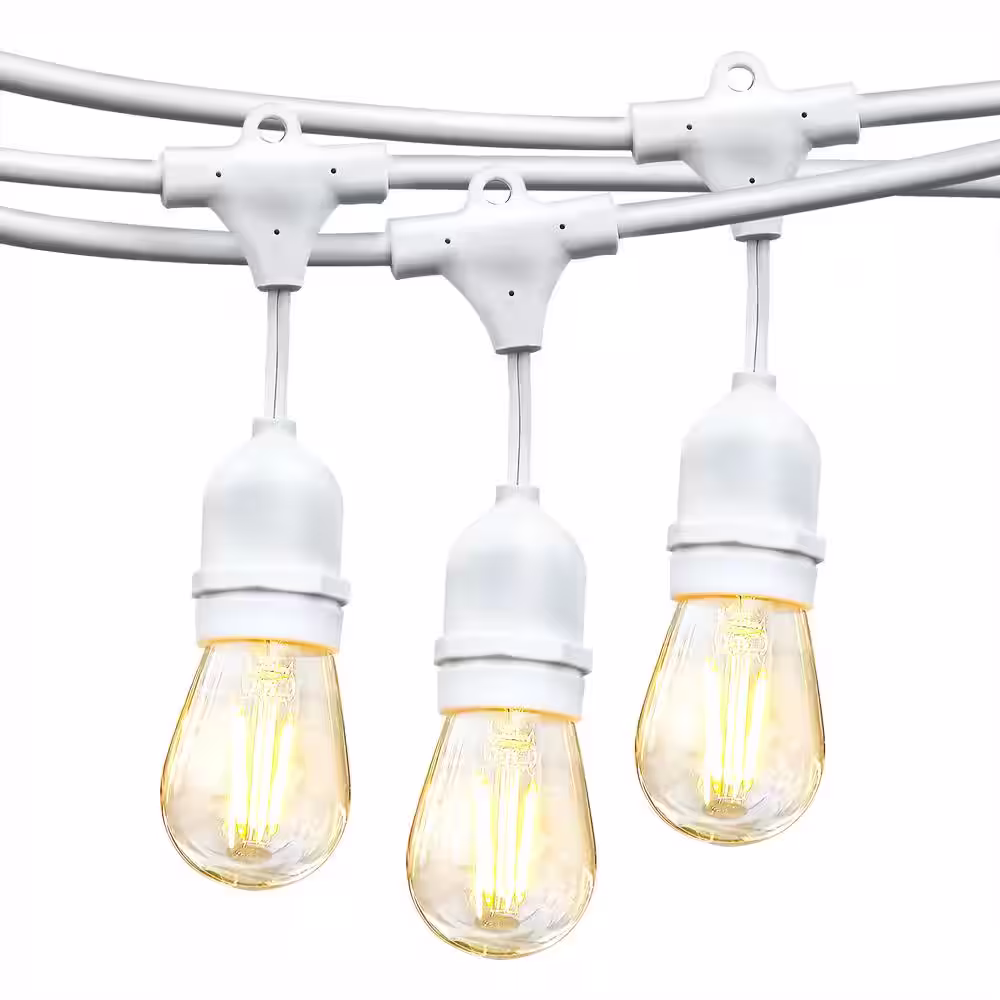Brightech Ambience Pro White 15-Light 48 ft. Outdoor Plug-in 2W 2700k LED S14 Hanging Edison Bulb String-Light