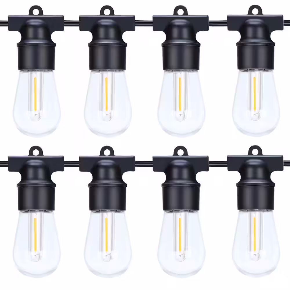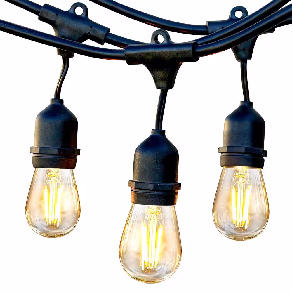Enbrighten 24 Bulb 48 ft. Outdoor/Indoor Black Vintage LED String Lights, Acrylic Edison Bulbs