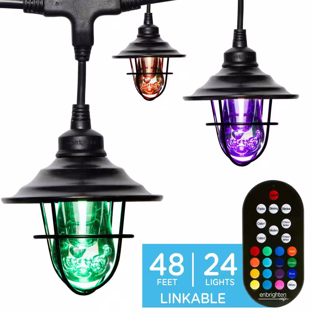 Enbrighten 12 Bulb 24 ft. Indoor/Outdoor Plug-In Integrated Color Changing LED String Lights with Remote, Oil-Rubbed Bronze Shades