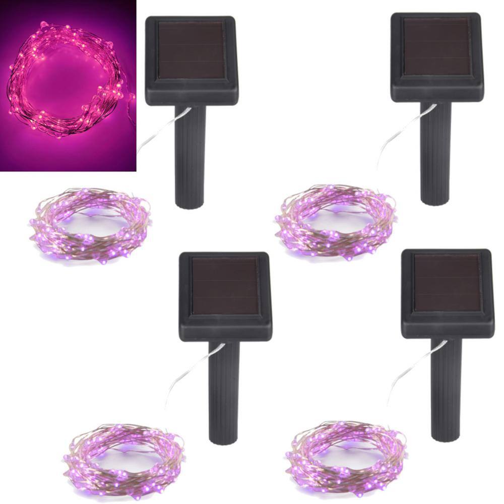 None Outdoor 100-Light 20 ft. Solar Pink Integrated LED String Light (4-Pack)