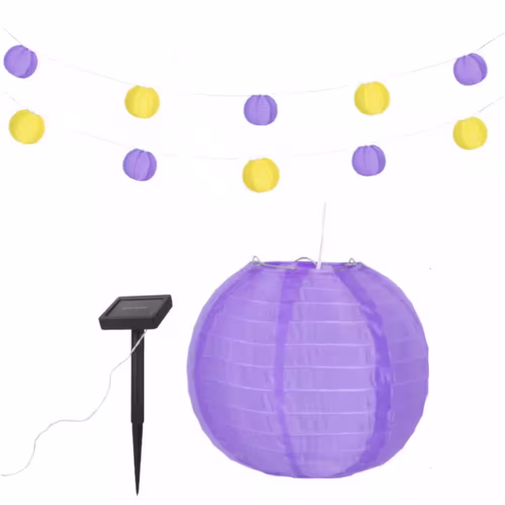 None Team XL Outdoor 32 ft. (384 in.) Solar Lantern LED String Light with 10-Light Nylon Purple and Yellow Lanterns