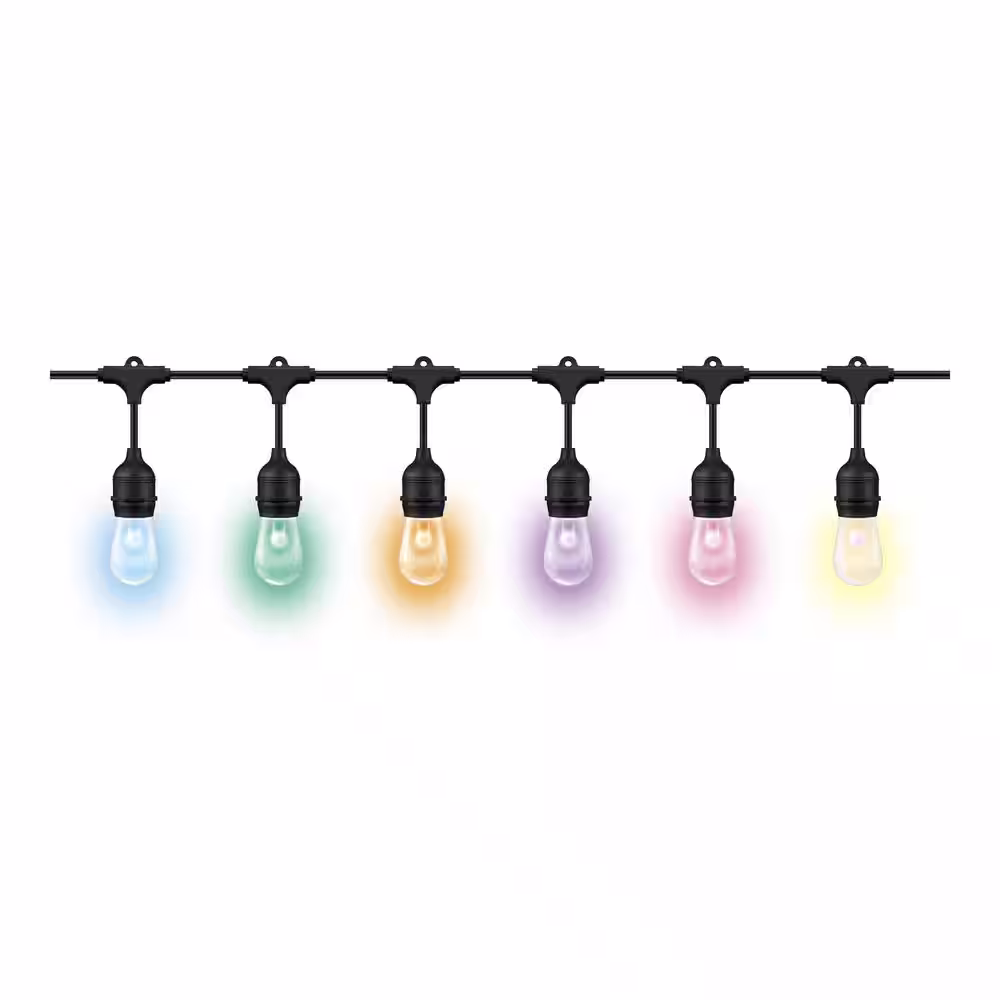 None Outdoor Plug-In LED String Light Color and Tunable White Powered by WiZ with Bluetooth 12-Light 48 ft. (1-Pack)