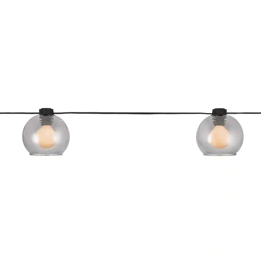 Hampton Bay 8-Light 10 ft. Black Indoor/Outdoor Plug-In String Light with Smoky Glass Shades and Incandescent Bulbs