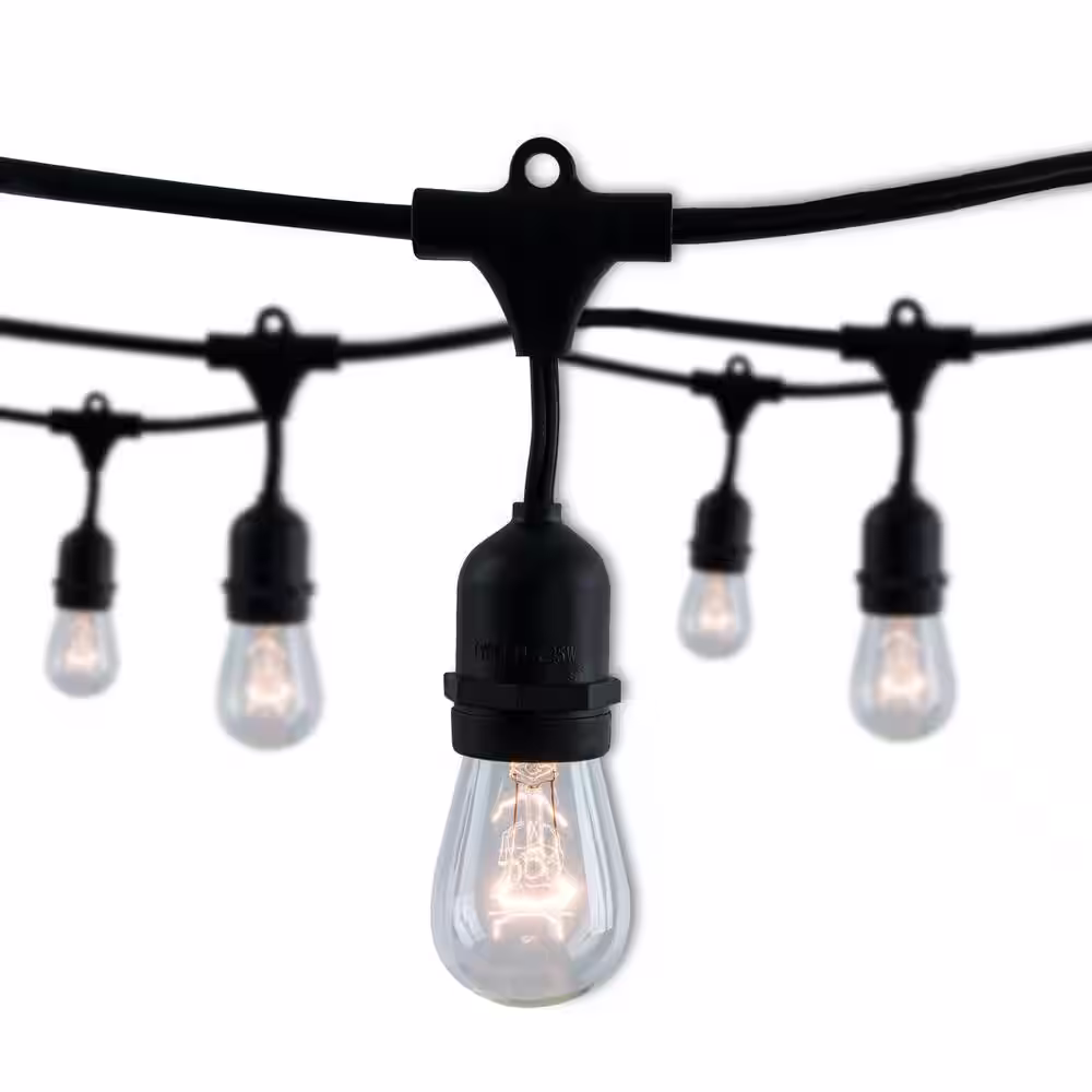 Bulbrite Outdoor/Indoor 30 ft. Plug-In Edison Bulb S14 Incandescent Vintage Style Black String Light 12 Sockets- Bulbs Included