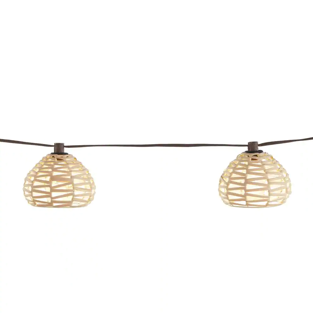 Hampton Bay 10-Light 10 ft. Outdoor/Indoor Plug-In Round Globe Bulb LED Rattan String Light