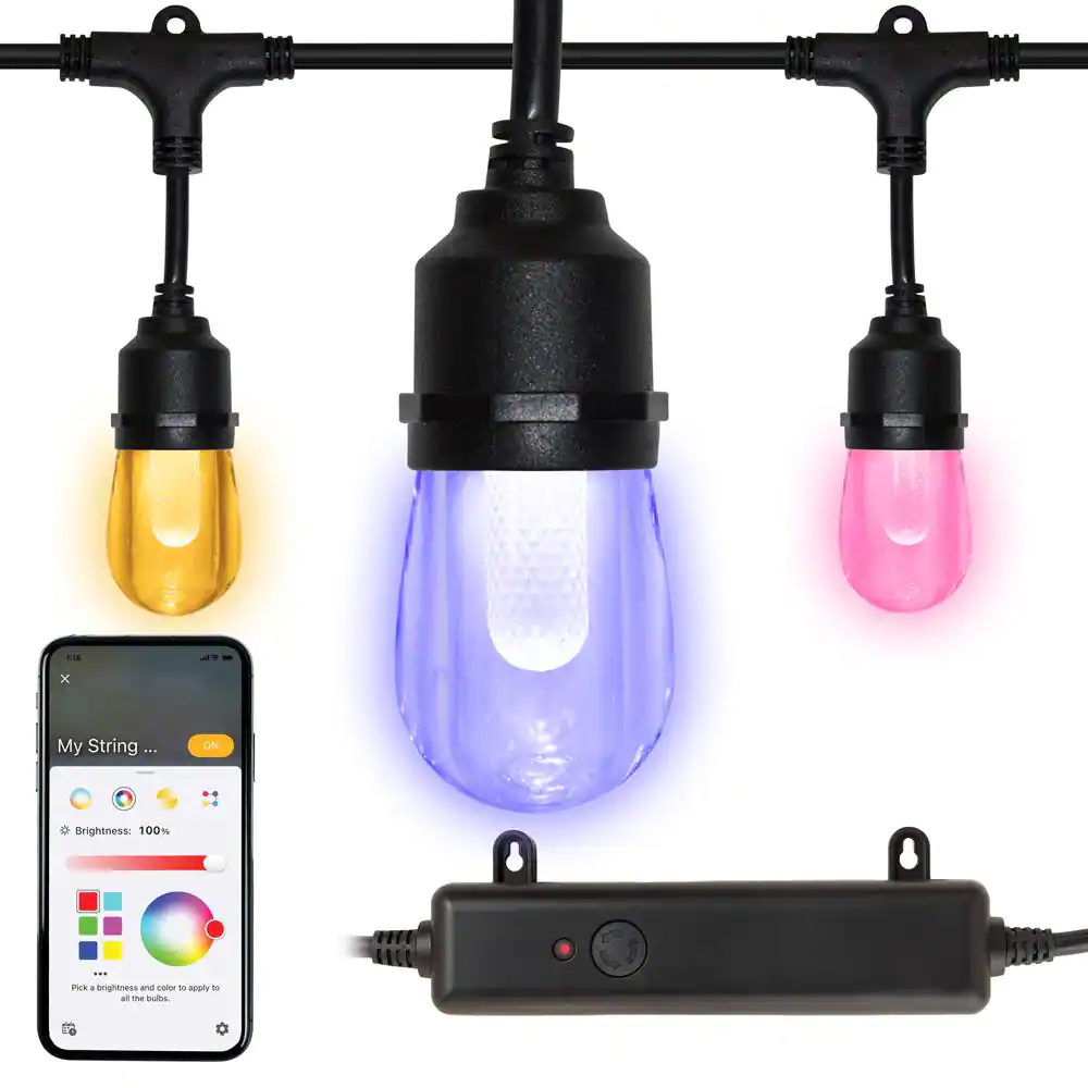 Hampton Bay Indoor/Outdoor 12-Light 24 ft. Smart Plug-in Edison Bulb RGBW Color Changing LED String Light Powered by Hubspace