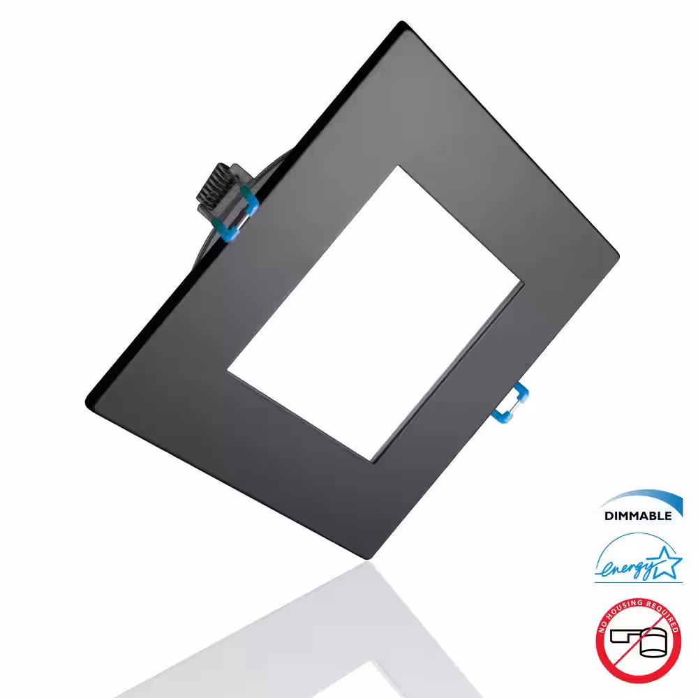 NICOR DLE Series 4 in. Square 5000K Black Integrated LED Recessed Canless Downlight with Trim