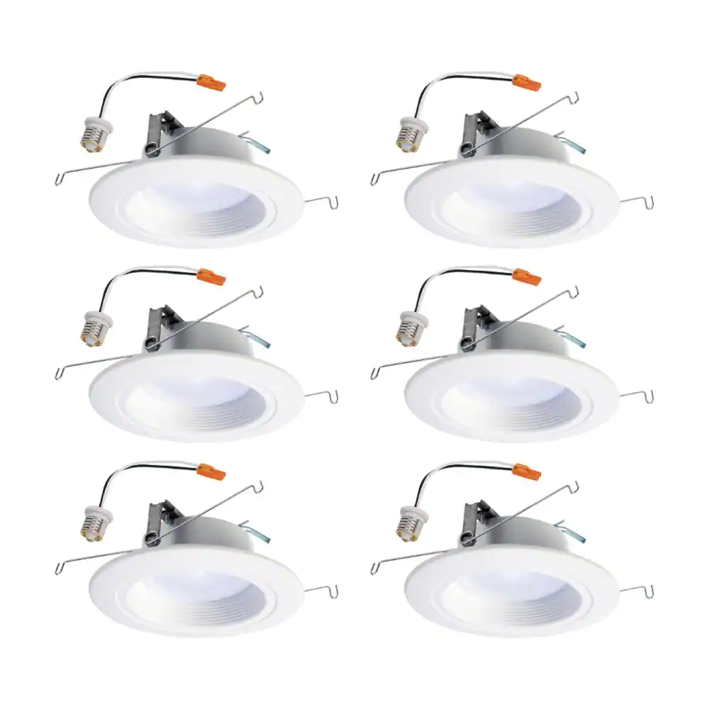 HALO RL 5 in. and 6 in. 2700K CCT Integrated LED White Recessed Light Retrofit Trim 90 CRI, Title 20 Compliant (6-Pack)