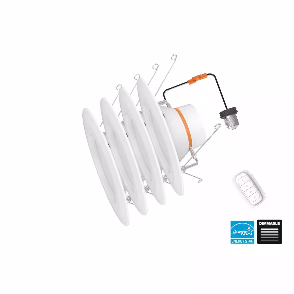 Commercial Electric 5/6 in. White Dimmable LED Recessed Trim with Adjustable Color Changing Technology and Smart Light Switch (4-Pack)