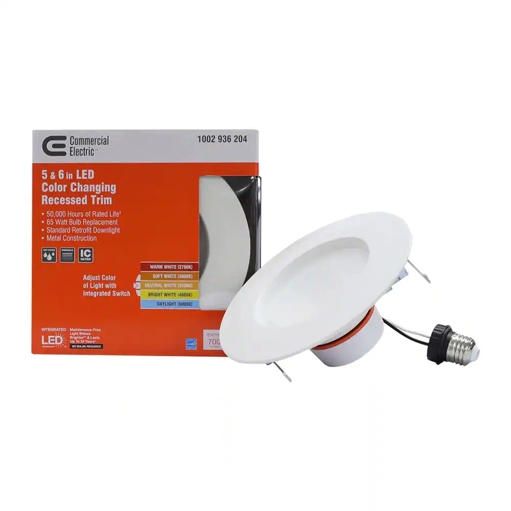 Commercial Electric 5/6 in. New Construction or Remodel Matte White Integrated LED Recessed Light Trim with Color Changing Technology