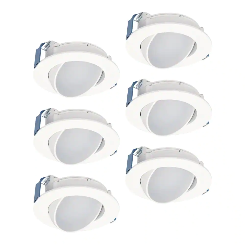 Halo 4 in. Selectable CCT (2700K-5000K) Canless Integrated LED Recessed Light Wide Beam Adjustable Gimbal Trim Kit (6-Pack)
