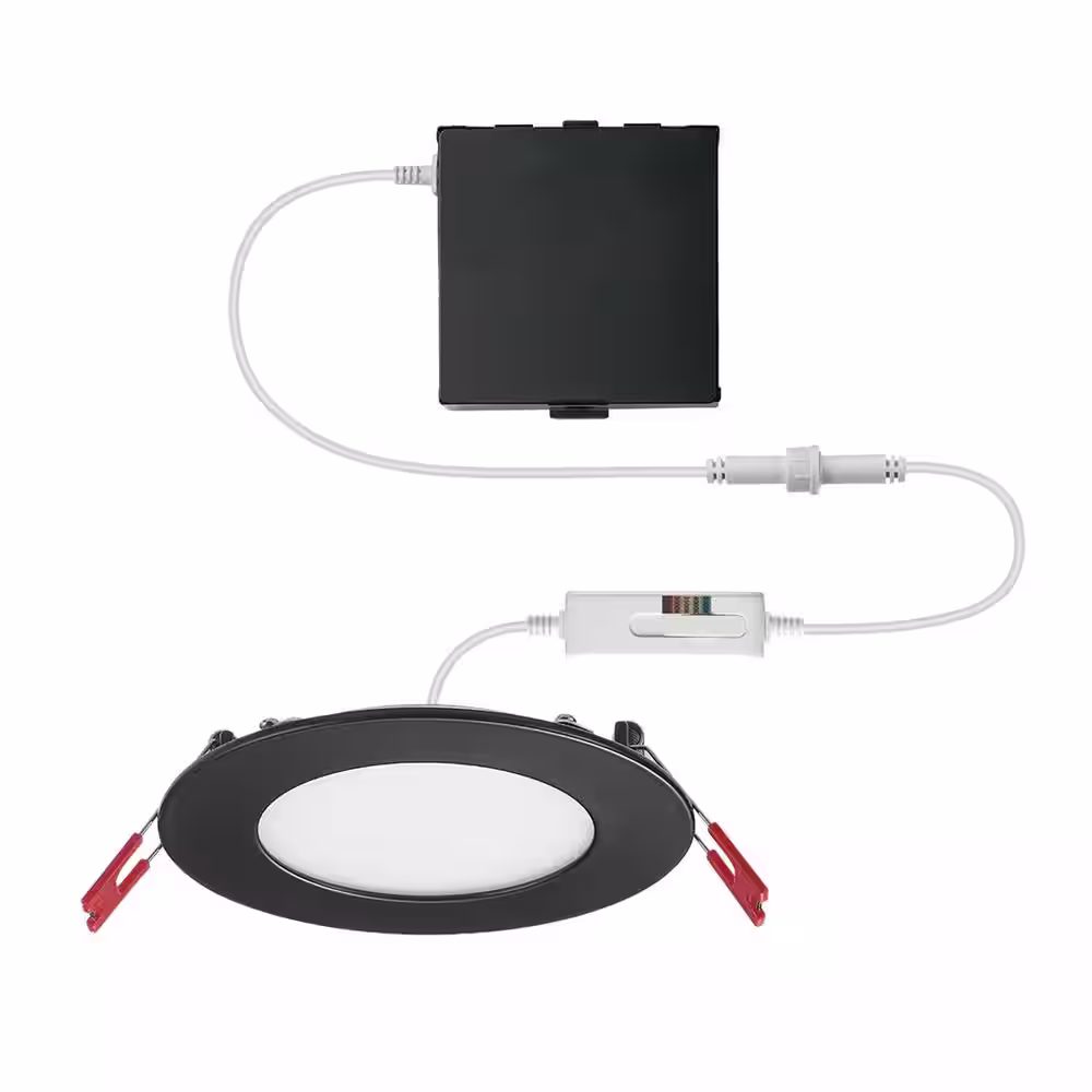 Commercial Electric Ultra-Slim 4 in. Matte Black Color Selectable New Construction and Remodel Color Canless Recessed Integrated LED Kit
