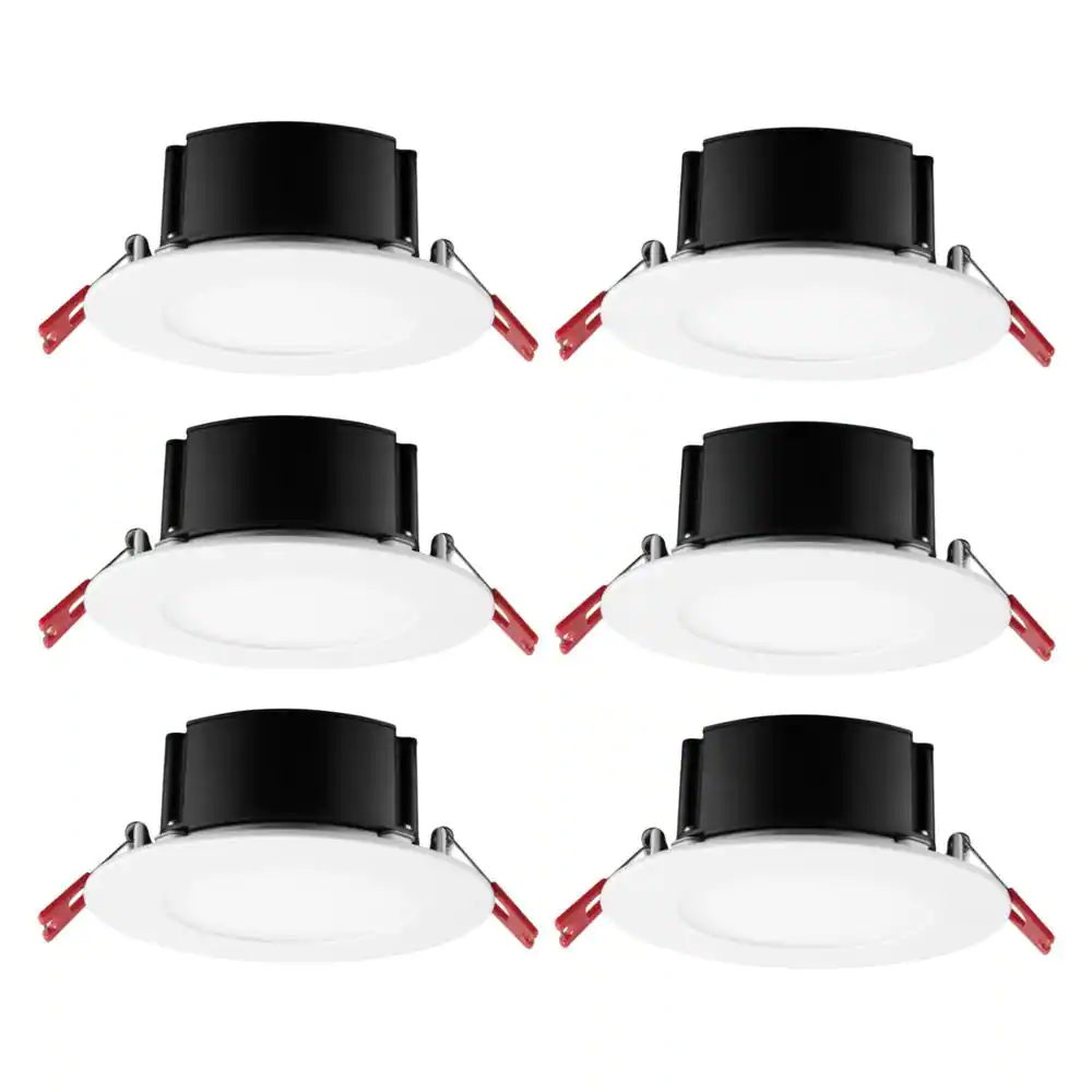 Commercial Electric 6 in. White Flush Round Wet Rated LED Integrated Recessed Lighting Kit (6-Pack)