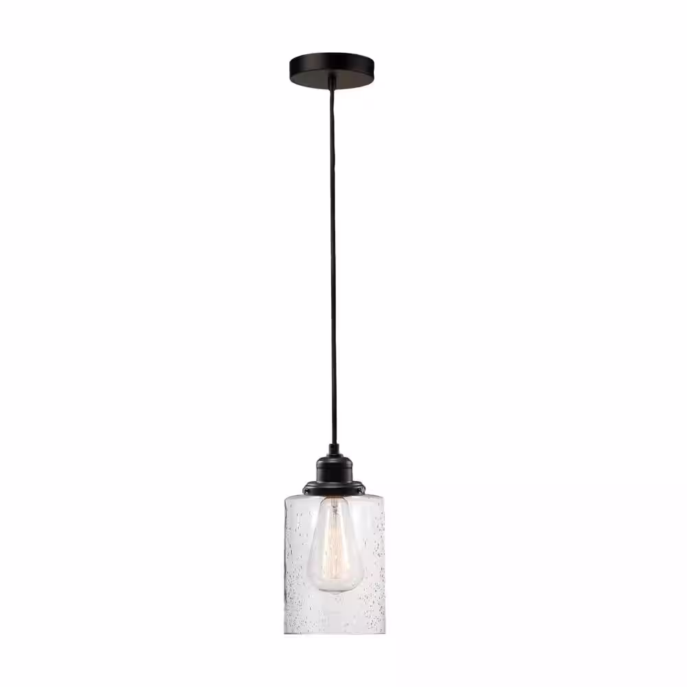 Globe Electric Annecy 1-Light Plug-In or Hardwire Dark Bronze Pendant Light with Seeded Glass Shade