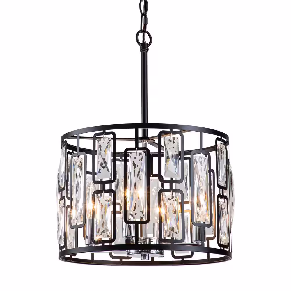 C Cattleya 4-Light Black Drum Pendant Light with Clear Crystals