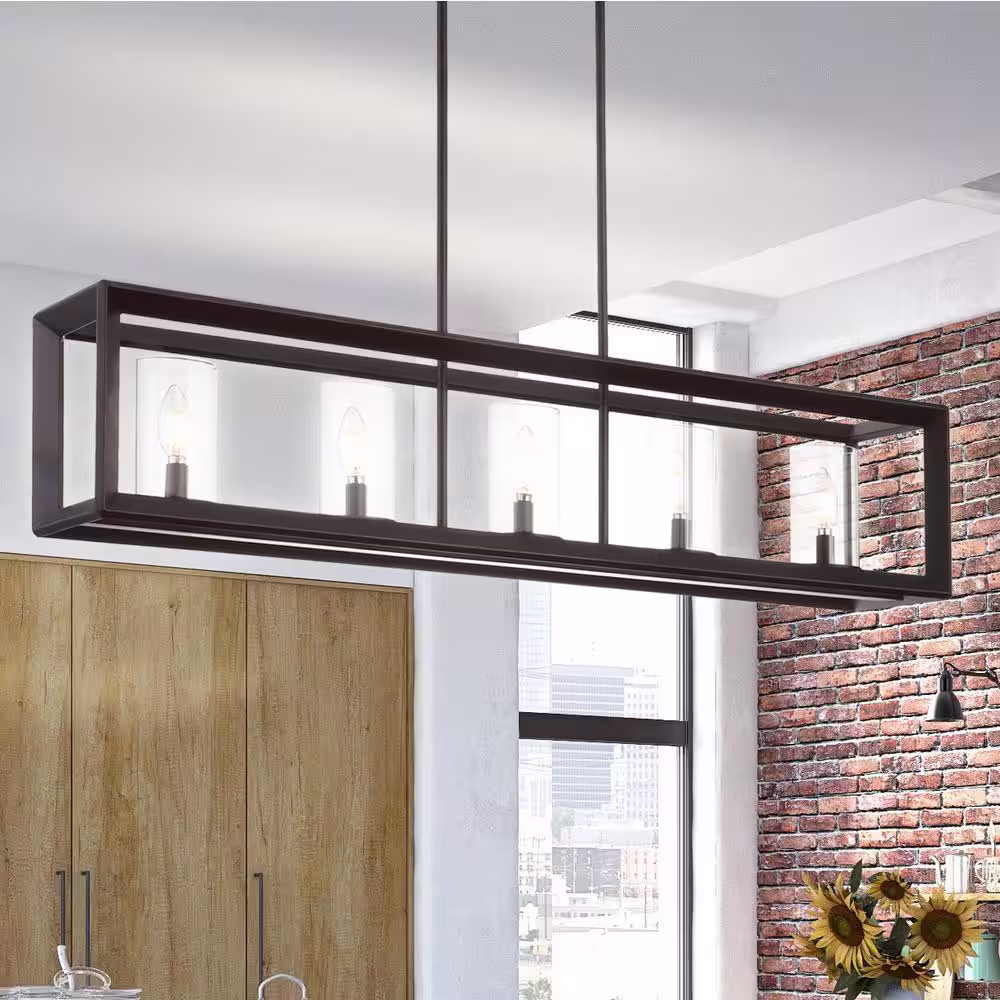 JONATHAN Y Anna 38.5 in. 5-Light Oil Rubbed Bronze Metal/Glass LED Pendant