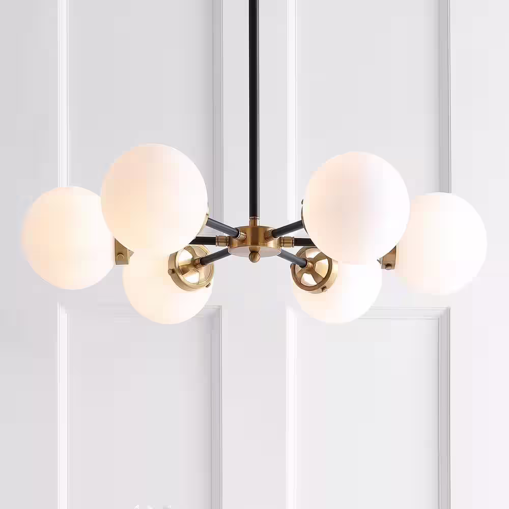 JONATHAN Y Caleb Adjustable 6-Light 28" Brass Cluster Chandelier, Brass Gold/Black