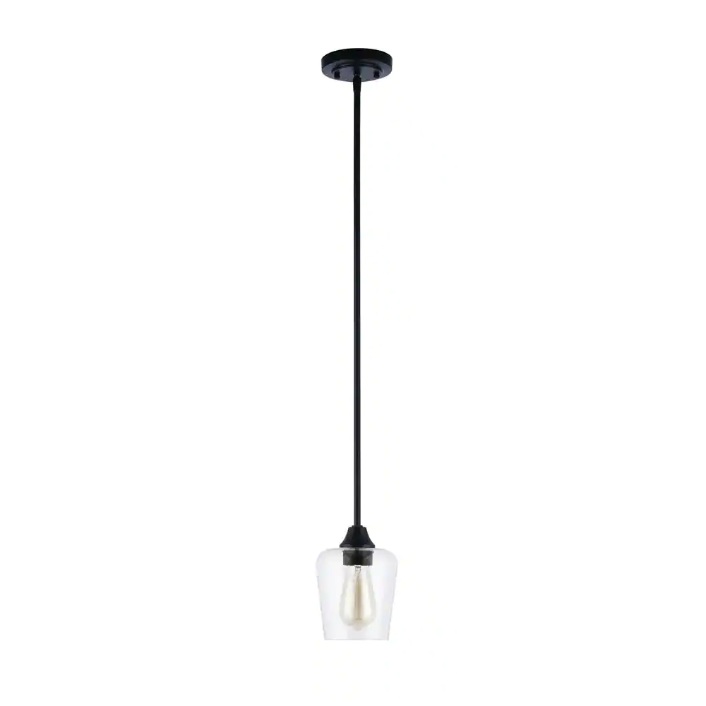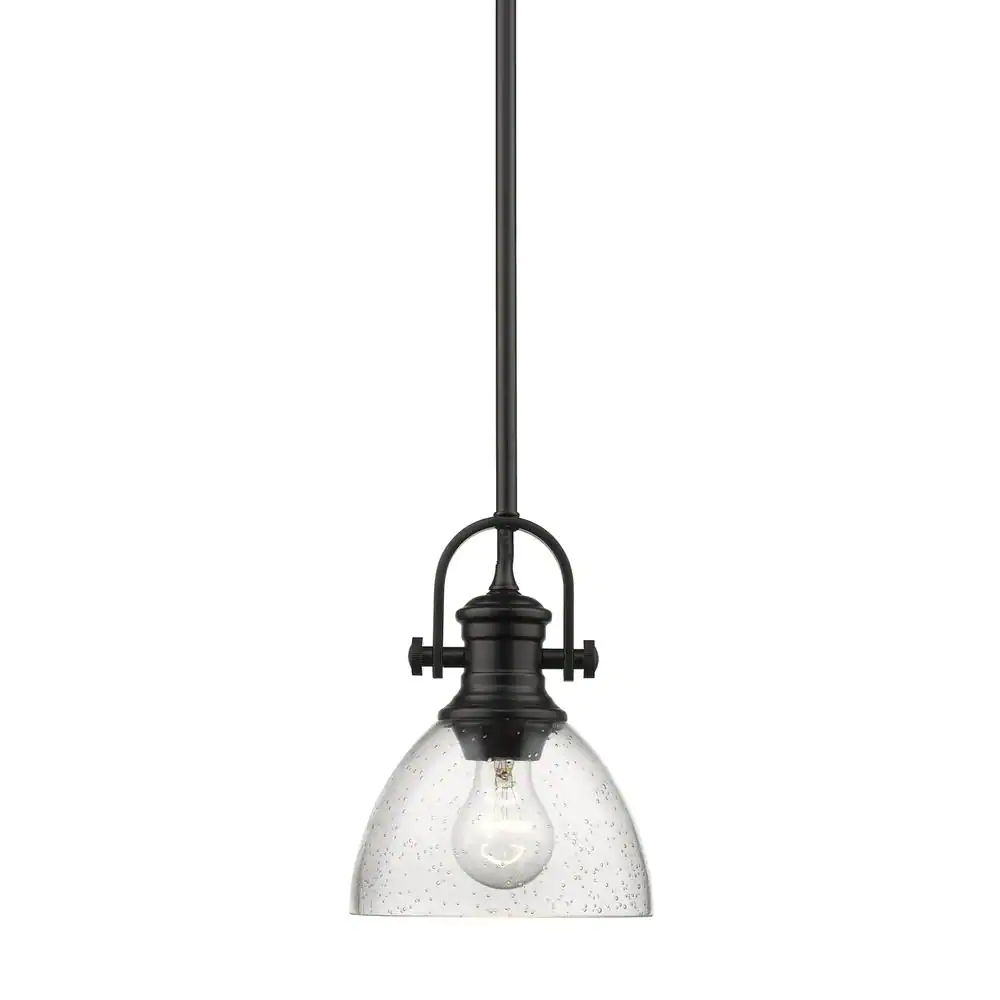 Golden Lighting Hines 1-Light Black Mini Pendant Light with Seeded Glass Shade