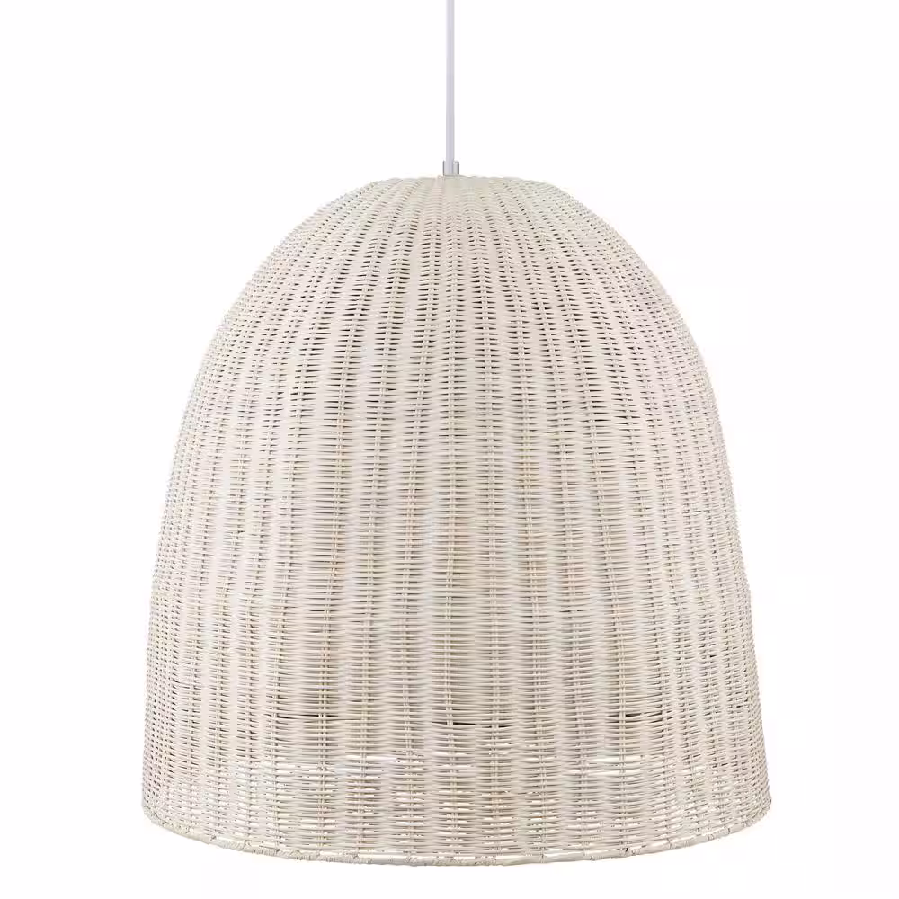 Hampton Bay Highler 1-Light Silver Pendant with White Rattan Shade