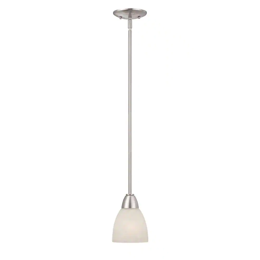 Designers Fountain Torino 100-Watt 1-Light Brushed Nickel Mini-Pendant with Alabaster Glass Shade