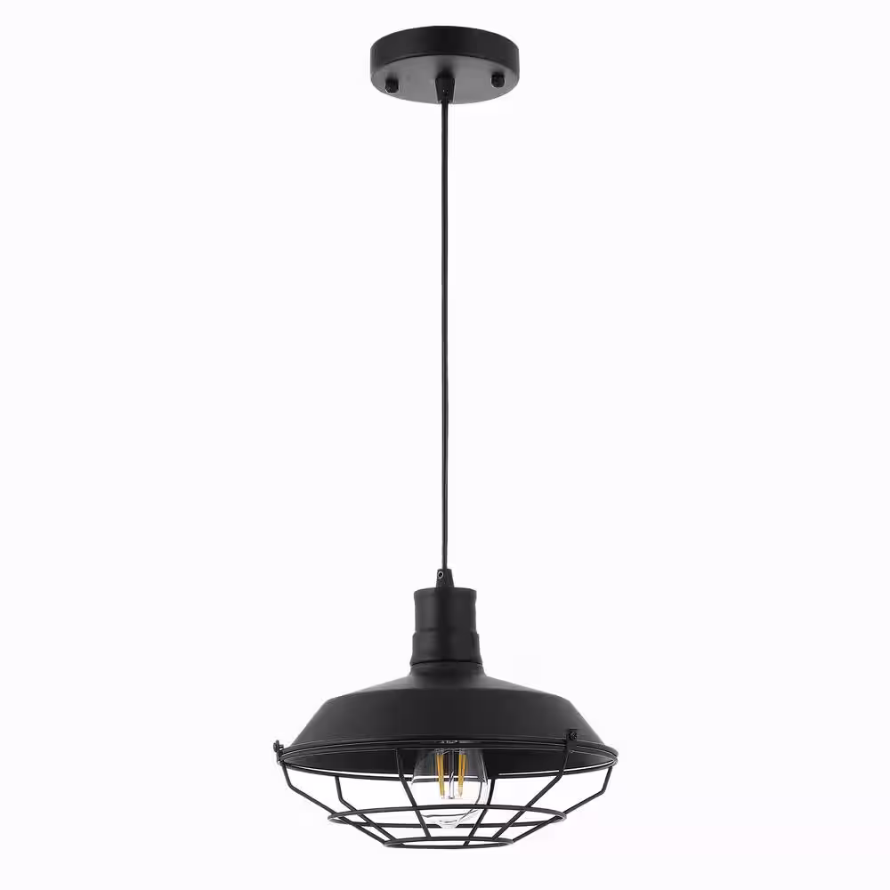 None 1-Lighe10.25 in. Metal Cage Pendant Light with 72 in. Height Adjustable Wire, Black Finish