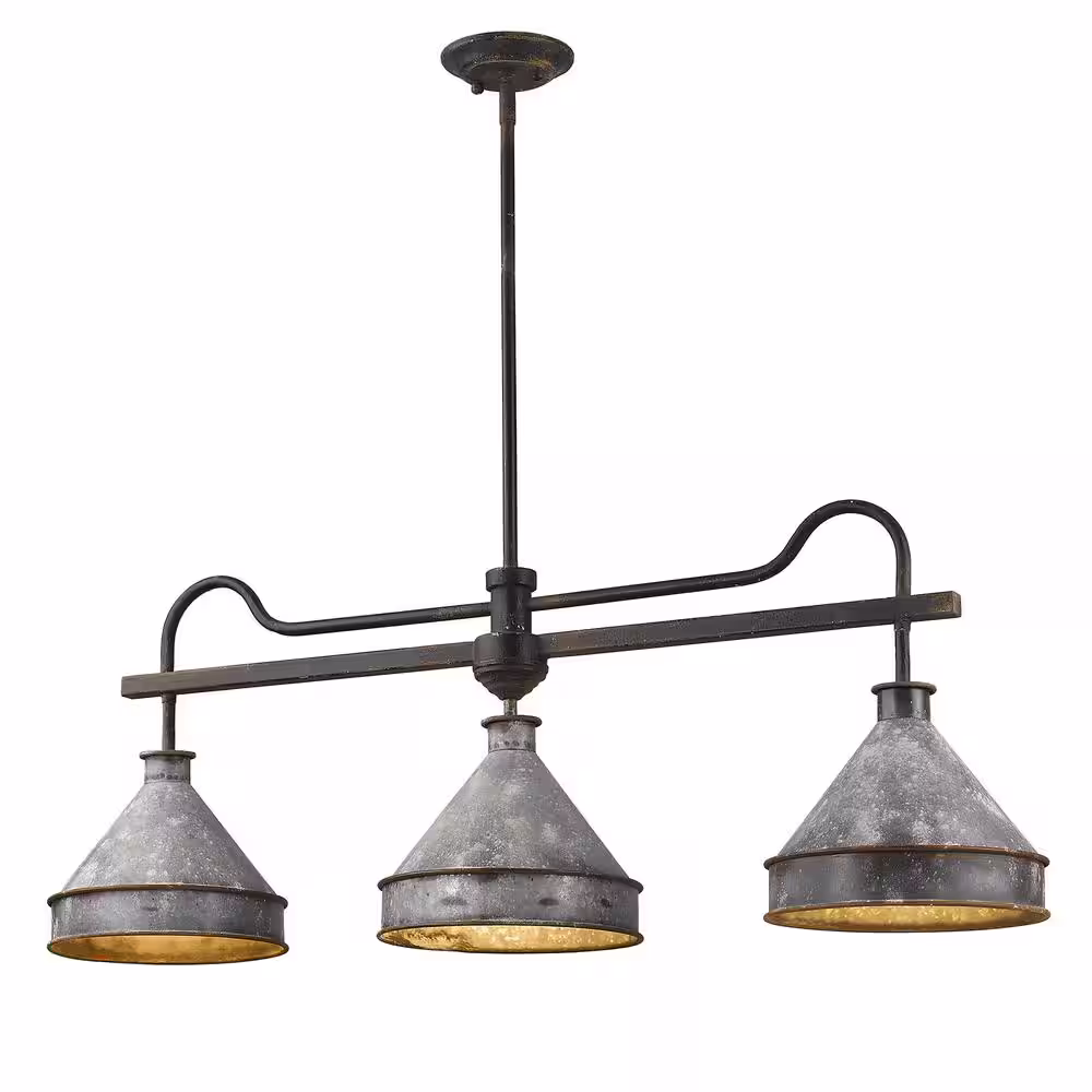 Golden Lighting Jasper 3-Light Antique Black Iron Pendant with Galvanized Steel Shade