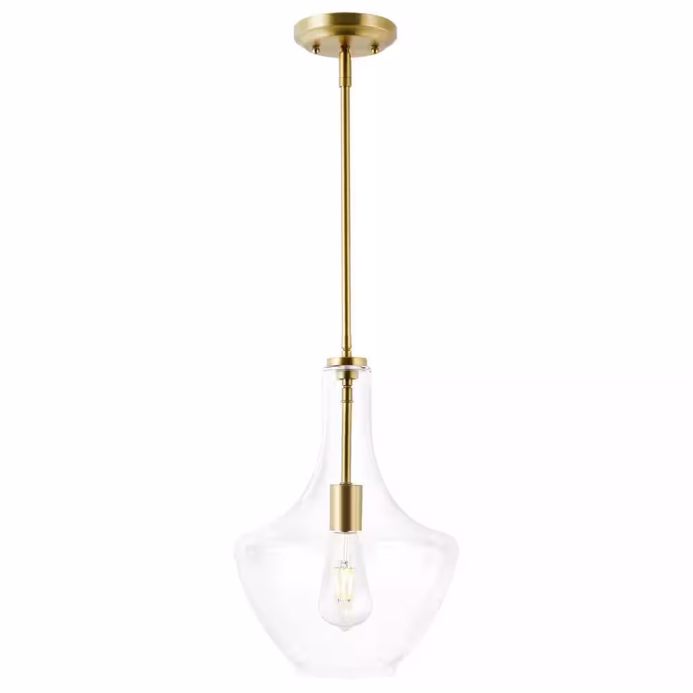 Light Society Sienna 1-Light Brushed Brass/Clear Pendant with Glass Shade