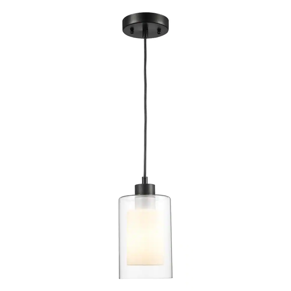 Bel Air Lighting 1-Light Black Mini Pendant Light Fixture with Frosted Inner and Clear Glass Outer Shade