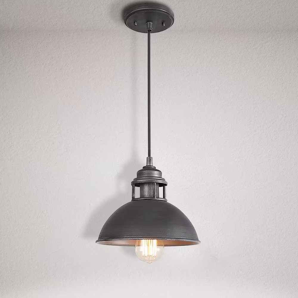 LNC Industrial 1-Light Brushed Silver and Black Island Pendant Light with Classic Dome Shade Barn Pendant LED Compatible