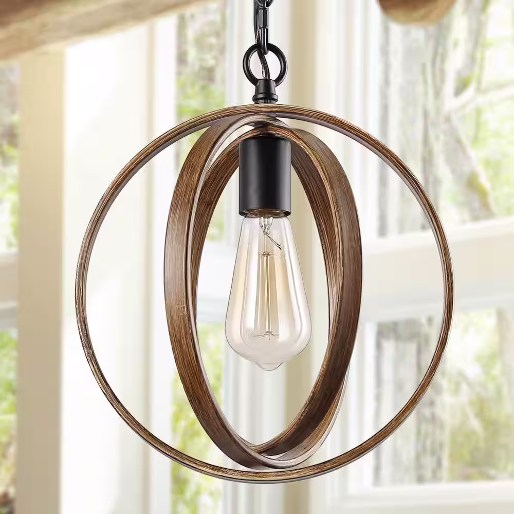 LNC 1-Light Black Modern Farmhouse Pendant Light with Faux Wood Accents Black Chandeliers for Dining Room