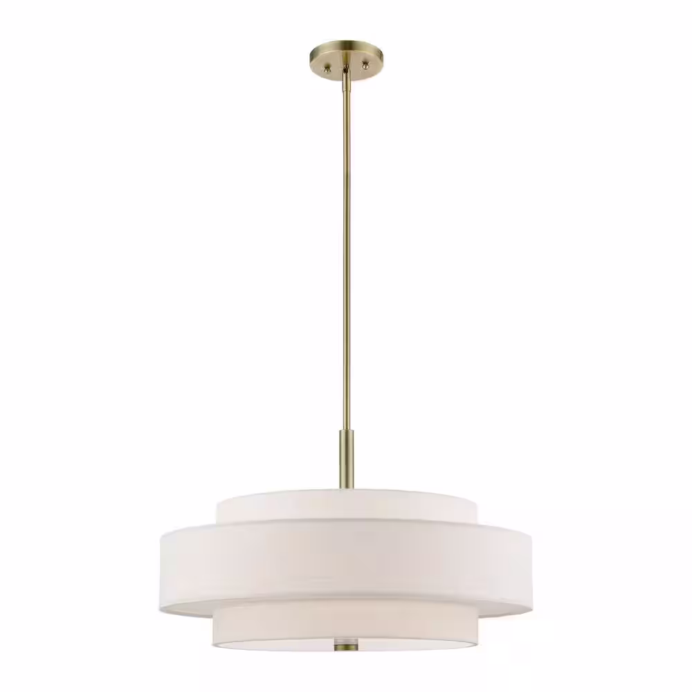 Livex Lighting Monroe 5-Light Antique Brass Pendant Chandelier with Oatmeal Fabric Shade