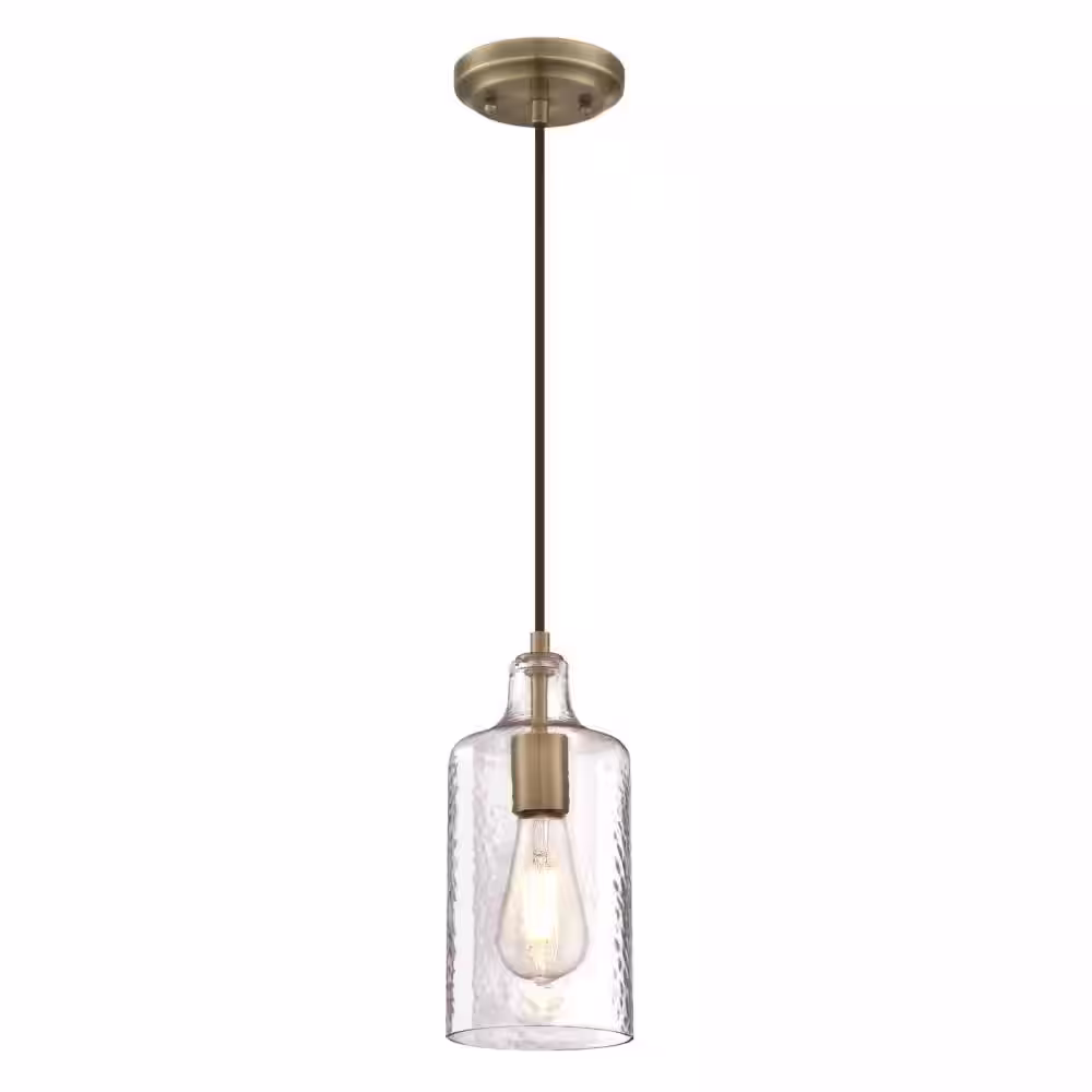 Westinghouse Carmen 1-Light Antique Brass Mini Pendant with Clear Textured Glass Shade