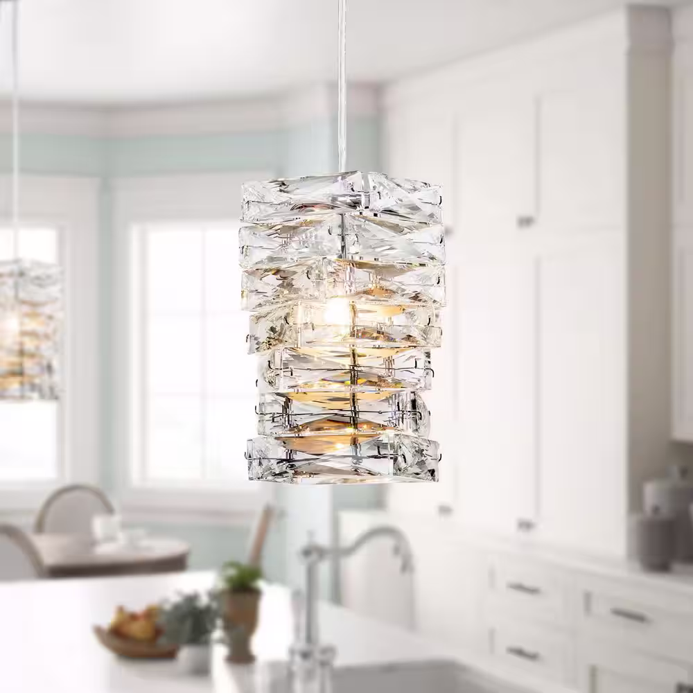 EDISLIVE Perley 1-Light Chrome Crystal Cylinder Pendant Light