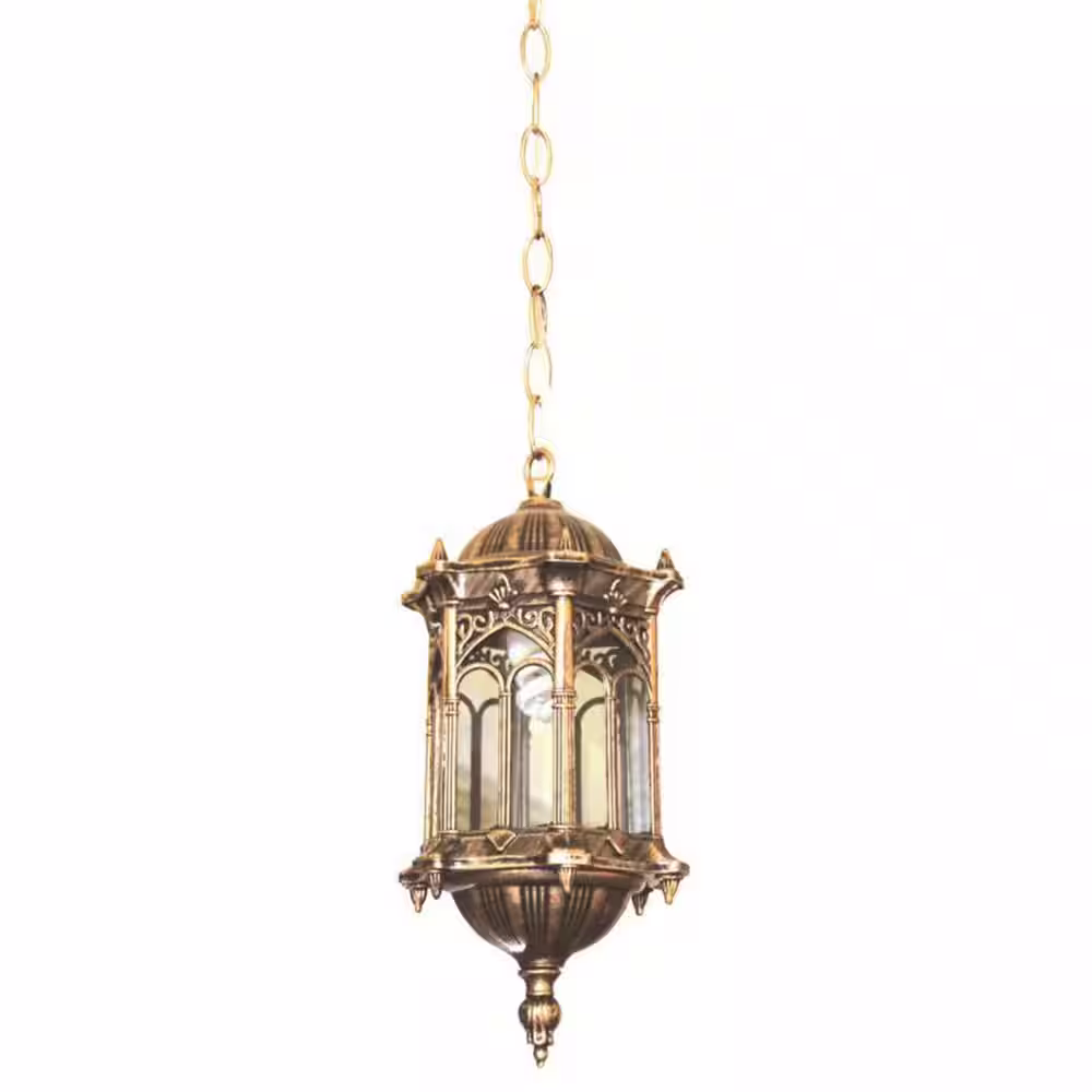 None 1-Light Modern Classic Indoor/Outdoor Bronze Waterproof Lantern Pendant Light with Glass Shade for Yard Garden