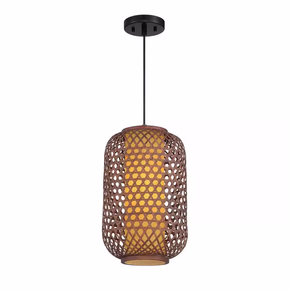 Designers Fountain Bodhi 60-Watt 1-Light Stained Cane Pendant with Black Accents
