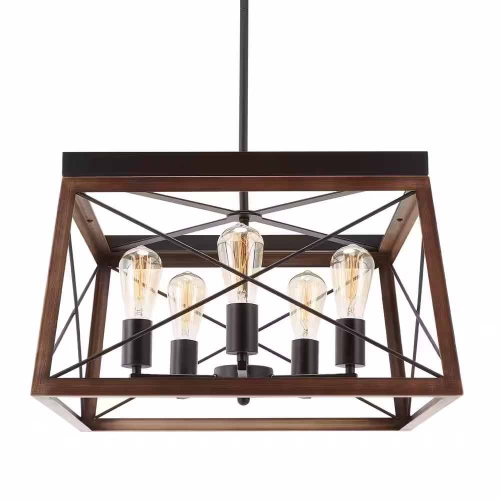 Merra 5-Light Brown Hanging Light Pendant Chandelier with Open Metal Frame
